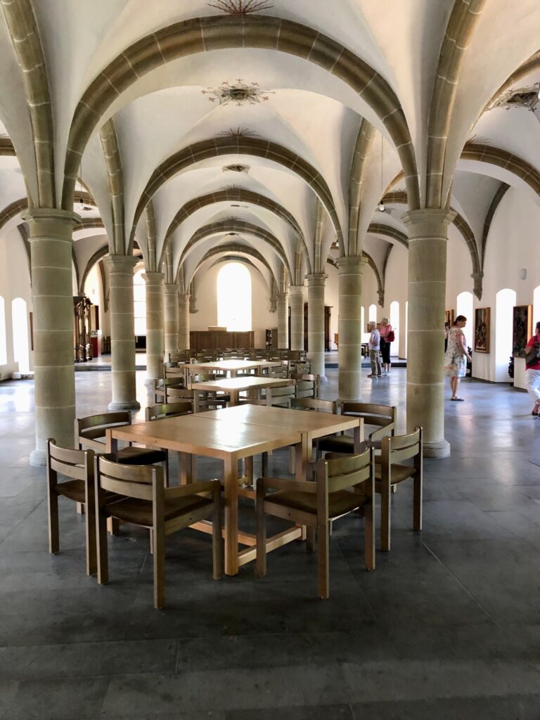 Abschließend ist hervorzuheben, dass der in 11 Jahren für 3,4 Millionen Euro bemerkenswert teilsanierte frühgotische Kreuzgang mit seinen kunstvoll wieder hergestellten Säulen und Kapitellen großes Erstaunen hervorrief. Ebenso beeindruckte das riesige Dormitorium (früherer Schlafsaal), welches heute die mehrere Tausend Exemplare umfassende Bibliothek beherbergt. Auch die große Sakristei und das Refektorium (klösterlicher Speisesaal) mit seiner malerischen Stuckdecke wurden bestaunt.