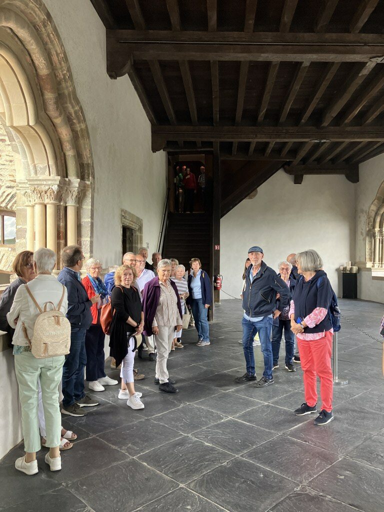 Unser erstes Ziel war die beeindruckende Burg Vianden, die majestätisch über der gleichnamigen Stadt und dem Ourtal thront. Nach der Ankunft hatten wir 1,5 Stunden Zeit, um das einst zerstörte und wieder aufgebaute Schloss unter fachkundiger Führung zu besichtigen. Die Teilnehmer*innen der 2 Gruppen waren beeindruckt von der Architektur und den fantastischen Ausblicken ins Tal.