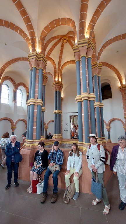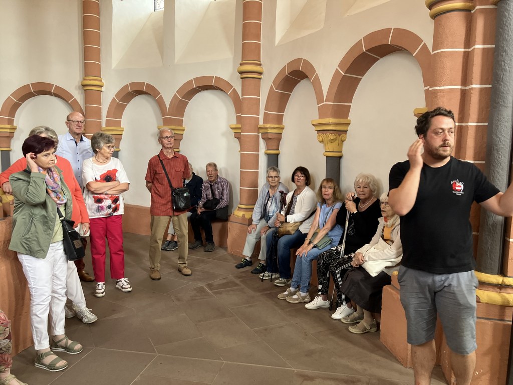 Um 15.45 Uhr fuhren wir weiter nach Echternach. Nach einer kurzen Erklärung im Bus über die Geschichte Echternachs und der dortigen Basilika St. Willibrord hatten wir nach der Ankunft die Möglichkeit, das Städtchen auf eigene Faust zu erkunden. Viele nutzten die Zeit, um durch die charmanten Gassen zu schlendern, kleine Geschäfte zu besuchen oder einfach in einem der zahlreichen Cafés zu verweilen. Ein Highlight war für einige der Besuch der Basilika, die für ihre kunstvolle Architektur und historische Bedeutung rund um den Heiligen Willibrord bekannt ist. Hier konnten wir die Ruhe und den Frieden des Ortes auf uns wirken lassen.